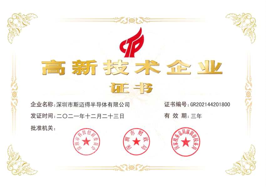 日前,全國(guó)高新技術(shù)企業(yè)認(rèn)定管理工作領(lǐng)導(dǎo)小組辦公室根據(jù)《高新技術(shù)企業(yè)認(rèn)定管理辦法》(國(guó)科發(fā)火〔2016〕32號(hào))和《高新技術(shù)企業(yè)認(rèn)定管理工作指引》(國(guó)科發(fā)火〔2016〕195號(hào))有關(guān)規(guī)定,發(fā)布了對(duì)深圳市認(rèn)定管理機(jī)構(gòu)2021年認(rèn)定的第一批3823家高新技術(shù)企業(yè)備案公示的通知,鴻利智匯(300219)旗下子公司深圳市斯邁得半導(dǎo)體有限公司(簡(jiǎn)稱“斯邁得”)已通過公示期,再獲國(guó)家高新技術(shù)企業(yè)認(rèn)定,有效期為3年。