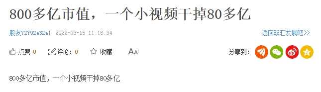 股吧里,網(wǎng)友對(duì)此也議論紛紛:“800多億市值,一個(gè)小視頻干掉80多億”“上市公司管理和小作坊一樣”“跑了,不跌停對(duì)不起315”“我買在了高位,已做好長(zhǎng)期準(zhǔn)備,不怨別人,自己鎖倉(cāng)”……
