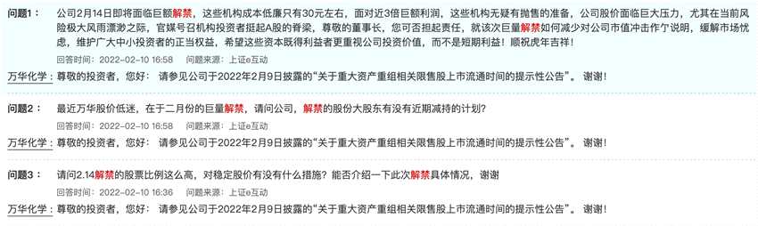不過,時代財經(jīng)注意到,萬華化學(xué)的潛在減持壓力,實際遠(yuǎn)低于此次解禁數(shù)量,并非所有股東都存在強(qiáng)烈減持欲望。