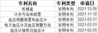 那樂心醫(yī)療的研發(fā)成果如何呢?從專利申請(qǐng)數(shù)量來看,隨著研發(fā)投入的增多,樂心醫(yī)療專利申請(qǐng)總數(shù)走下坡路,并且發(fā)明專利數(shù)量也大幅下降。同花順ifind顯示,2018年公司申請(qǐng)的專利共38件,其中包括36件發(fā)明專利,此后專利申請(qǐng)總數(shù)逐年下降,2021年共申請(qǐng)8件專利,其中發(fā)明專利5件,發(fā)明專利主要集中在血壓計(jì)、計(jì)步方面。
