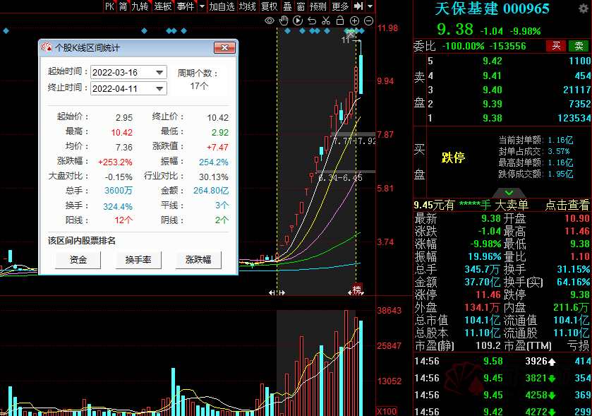 不過連續(xù)的爆炒過后也積累了較大風(fēng)險(xiǎn),4月11日晚間,天保基建發(fā)布風(fēng)險(xiǎn)提示公告稱,截至2022年4月11日收盤,公司收盤價(jià)格為10.42元、換手率為32.34%、市盈率(靜)為 121.36、市凈率為2.18。根據(jù)中證指數(shù)有限公司相關(guān)行業(yè)分類數(shù)據(jù),公司所屬證監(jiān)會(huì)行業(yè)K房地產(chǎn)業(yè)最新靜態(tài)市盈率8.46、市凈率1.12.2022年3月16日至4月11日,公司股票區(qū)間漲幅為253.22%,區(qū)間換手率為324.41%。公司股價(jià)近期波動(dòng)幅度大,估值大幅高于同行業(yè)上市公司水平。