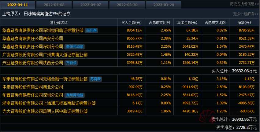 與此同時(shí),華泰證券無錫金融一街賣出金額為1.13億元;【中泰證券(600918)、股吧】(600918)湖北分公司位列賣方第二位,賣出金額為9011.94萬元;另有華鑫證券深圳分公司居于賣方第三位。