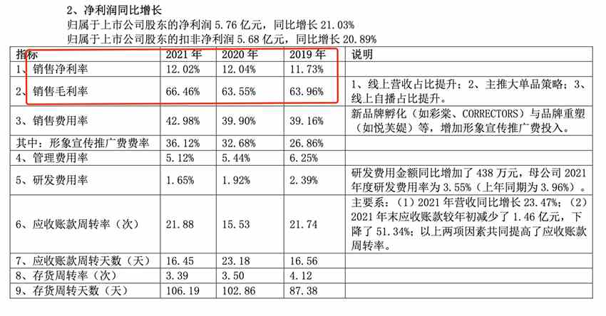 此外,財(cái)報(bào)顯示,去年珀萊雅的毛利率為66.46%,對(duì)此珀萊雅也表示,原因主要系線上營(yíng)收占比提升,以及主推大單品策略和線上自播占比提升等。
