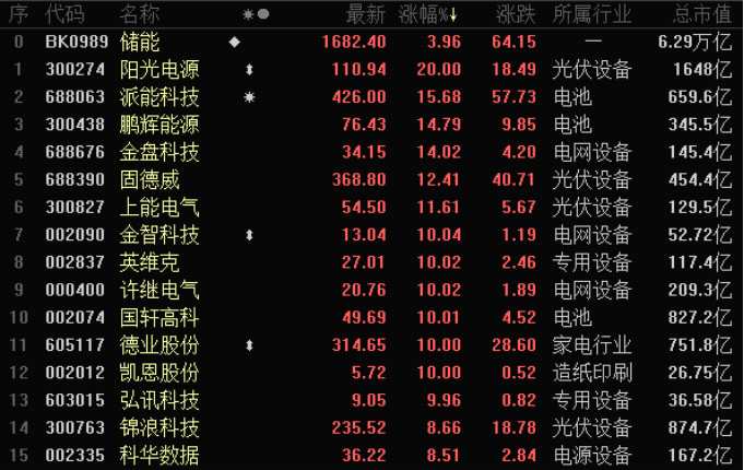 7月7日,儲能概念板塊持續(xù)拉升,截至收盤,陽光電源大漲20%收報漲停,報價110.94元/股,派能科技、金盤科技、固德威、【上能電氣(300827)、股吧】、金智科技、許繼電氣、德業(yè)股份等紛紛漲?;驖q超10%,創(chuàng)下歷史新高的不在少數(shù)。