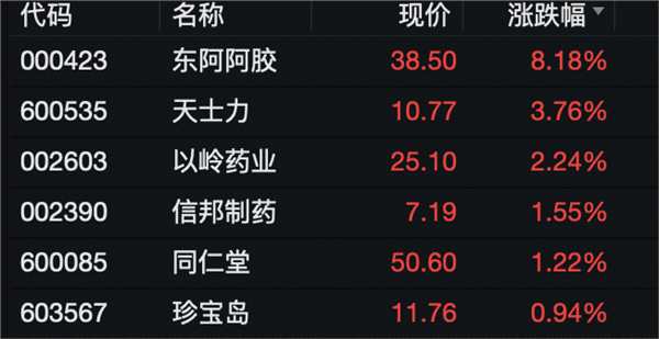 中藥板塊異動,貴州百靈快速拉升觸及漲停板,東阿阿膠、昆藥集團(tuán)、青海春天、太極集團(tuán)等紛紛走高。