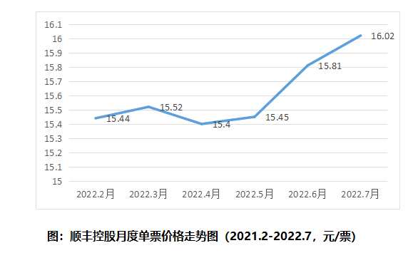 順豐控股:?jiǎn)纹笔杖脒B續(xù)9個(gè)月回升 7月回升至16.02元/票