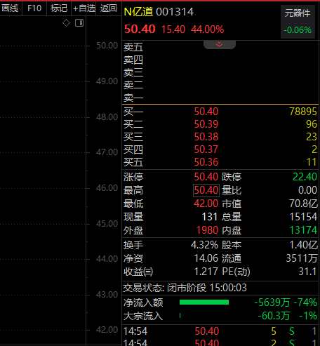 億道信息是一家以O(shè)DM為模式,專(zhuān)業(yè)從事筆記本電腦、平板電腦及其他智能硬件等電子設(shè)備的研發(fā)、設(shè)計(jì)、生產(chǎn)和銷(xiāo)售的高新技術(shù)企業(yè)。公司股票于情人節(jié)2月14日在深市主板上市,同時(shí)該股代碼為“001314”,兩大巧合于一身,億道信息也被股民稱(chēng)作“情人節(jié)第一股”。毫不意外,該股今天44cm漲停。不過(guò),從換手率來(lái)看,該股全天換手超4%,凸顯籌碼較為松動(dòng),市場(chǎng)情緒較謹(jǐn)慎。