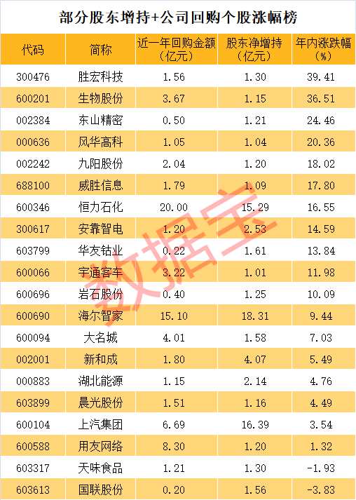 一般而言,通過(guò)股東增減持以及上市公司回購(gòu)的兩個(gè)角度,可以看出內(nèi)部人士對(duì)上市公司的看法,對(duì)公司的股價(jià)也會(huì)產(chǎn)生較大的影響。部分個(gè)股年內(nèi)表現(xiàn)也較為出色,勝宏科技、生物股份兩只個(gè)股年內(nèi)漲幅均超過(guò)30%。(數(shù)據(jù)寶 陳見(jiàn)南)