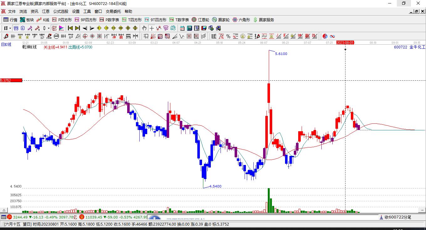 600722金牛化工低開收十字星是很重要的多空轉(zhuǎn)換信號,該十字星出現(xiàn)在下跌9日后,且股價跌去了5.07%,股價今日處于“贏家江恩軟件”極反通道工具“弱勢通道”區(qū)域。