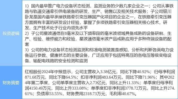 10月10日紅相股份漲停分析:毫米波通信,高鐵軌交,特高壓概念熱股