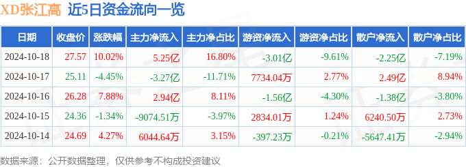 消息,XD張江高10月18日漲停收盤,收盤價27.57元。該股于13點33分漲停,未打開漲停,截止收盤封單資金為2.7億元,占其流通市值0.63%。