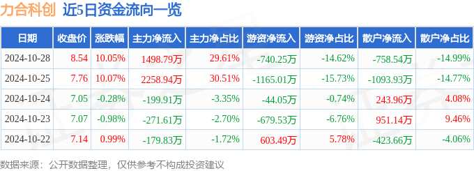 摘要: 消息,力合科創(chuàng)10月28日漲停收盤(pán),收盤(pán)價(jià)8.54元。該股于9點(diǎn)25分漲停,未打開(kāi)漲停,截止收盤(pán)封單資金為4.49億元,占其流通市值4.36%。10月28日的資金流向數(shù)據(jù)方面,