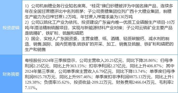 11月25日粵桂股份漲停分析:白糖,廣西概念,磷化工概念熱股