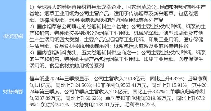 12月2日恒豐紙業(yè)漲停分析:振興東北,煙草,造紙概念熱股