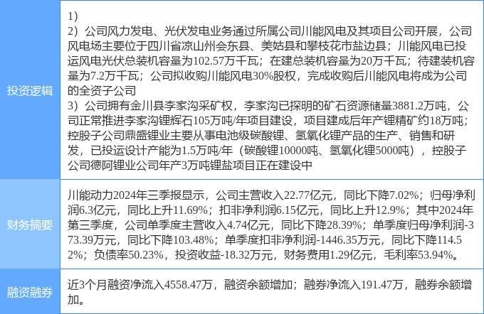 12月2日川能動力漲停分析:風電,新能源汽車,鋰電池概念熱股