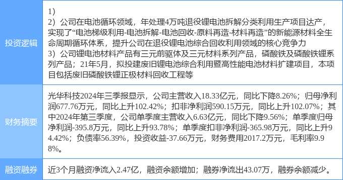 12月3日光華科技漲停分析:新能源汽車,磷酸鐵鋰,動力電池回收概念熱股