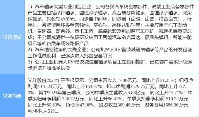 12月4日光洋股份漲停分析:減速器,機器人,汽車零部件概念熱股
