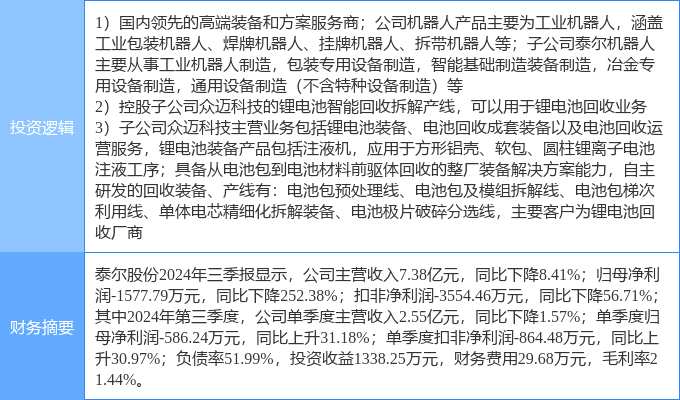 12月9日泰爾股份漲停分析:機(jī)器人,新能源汽車(chē),動(dòng)力電池回收概念熱股