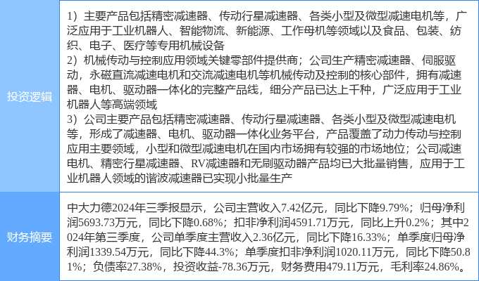 12月24日中大力德漲停分析:減速器,機器人,智能制造概念熱股