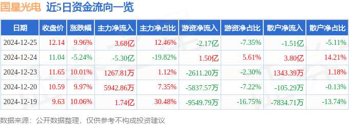 消息,國星光電12月25日漲停收盤,收盤價12.14元。該股于9點(diǎn)30分漲停,11次打開漲停,截止收盤封單資金為7888.24萬元,占其流通市值1.05%。