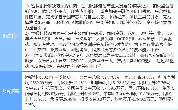1月7日恒銀科技漲停分析:虛擬數(shù)字人,人工智能,信創(chuàng)概念熱股