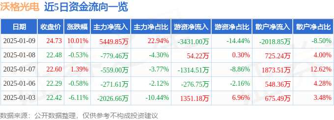 消息,沃格光電1月9日漲停收盤,收盤價(jià)24.73元。該股于9點(diǎn)30分漲停,1次打開漲停,截止收盤封單資金為3711.09萬元,占其流通市值0.74%。