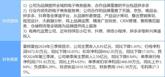 1月14日壹網壹創(chuàng)漲停分析:小紅書概念股,拼多多概念股,新零售概念熱股