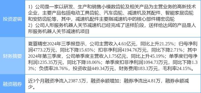 1月17日夏廈精密漲停分析:減速器,人形機器人,機器人概念熱股