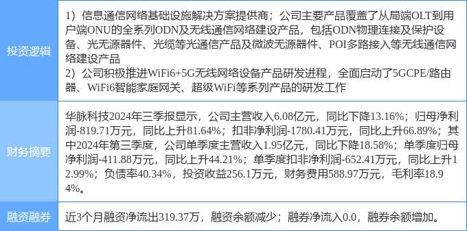 1月21日華脈科技漲停分析:WiFi,光通信,光纖概念概念熱股