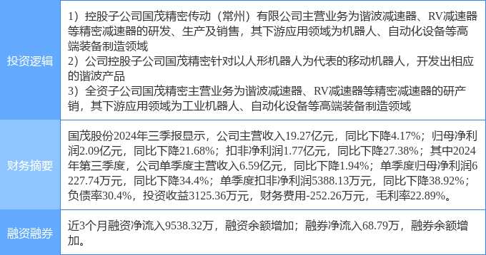 1月23日國(guó)茂股份漲停分析:減速器,機(jī)器人,人形機(jī)器人概念熱股