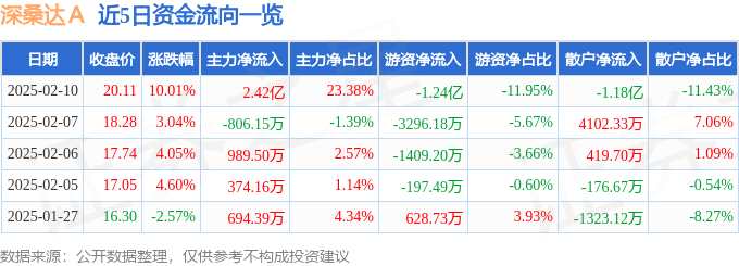 2月10日的資金流向數(shù)據(jù)方面,主力資金凈流入2.42億元,占總成交額23.38%,游資資金凈流出1.24億元,占總成交額11.95%,散戶資金凈流出1.18億元,占總成交額11.43%。