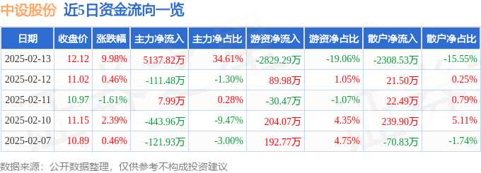 消息,中設股份2月13日漲停收盤,收盤價12.12元。該股于9點31分漲停,未打開漲停,截止收盤封單資金為2485.57萬元,占其流通市值1.51%。