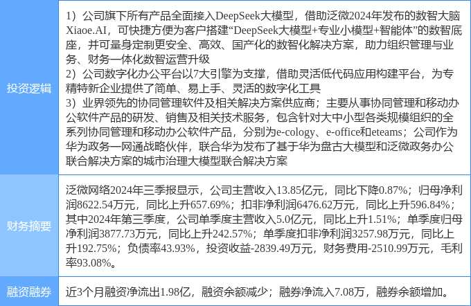 3月6日泛微網(wǎng)絡(luò)漲停分析:DeepSeek概念股,國產(chǎn)軟件,數(shù)字經(jīng)濟概念熱股