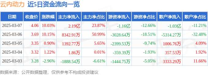 摘要: 消息,云內(nèi)動(dòng)力3月7日漲停收盤,收盤價(jià)4.06元。該股于9點(diǎn)30分漲停,1次打開漲停,截止收盤封單資金為1.3億元,占其流通市值1.66%。3月7日的資金流向數(shù)據(jù)方面,主力資金凈流入2.19億元,