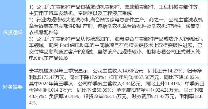 3月17日奇精機械漲停分析:汽車零部件,白色家電,新能源車零部件概念熱股