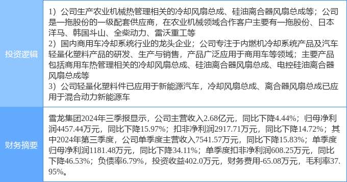 3月19日雪龍集團漲停分析:農(nóng)機,汽車零部件,新能源車零部件概念熱股