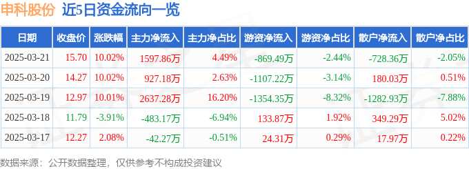 摘要: 消息,申科股份3月21日漲停收盤(pán),收盤(pán)價(jià)15.7元。該股于9點(diǎn)34分漲停,4次打開(kāi)漲停,截止收盤(pán)封單資金為2567.67萬(wàn)元,占其流通市值1.1%。3月21日的資金流向數(shù)據(jù)方面,