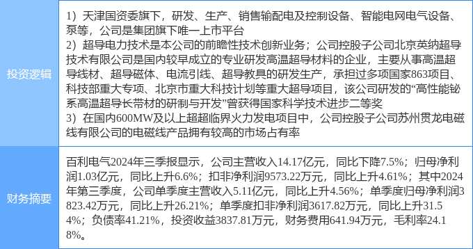 3月25日百利電氣漲停:超超臨界發(fā)電,超導(dǎo)概念,天津國企改革概念熱股