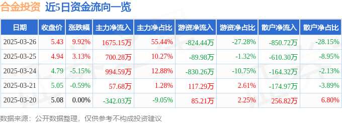 消息,合金投資3月26日漲停收盤,收盤價(jià)5.43元。該股于9點(diǎn)25分漲停,未打開(kāi)漲停,截止收盤封單資金為7595.86萬(wàn)元,占其流通市值3.63%。