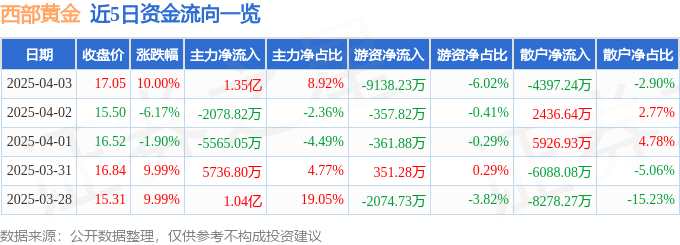 摘要: 消息,西部黃金4月3日漲停收盤,收盤價(jià)17.05元。該股于13點(diǎn)21分漲停,11次打開漲停,截止收盤封單資金為1964.16萬元,占其流通市值0.17%。4月3日的資金流向數(shù)據(jù)方面,