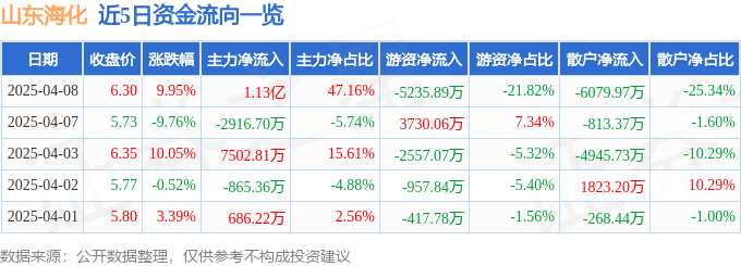 摘要: 消息,山東?;?月8日漲停收盤,收盤價(jià)6.3元。該股于9點(diǎn)31分漲停,未打開漲停,截止收盤封單資金為7452.02萬元,占其流通市值1.32%。4月8日的資金流向數(shù)據(jù)方面,主力資金凈流入1.13億元,