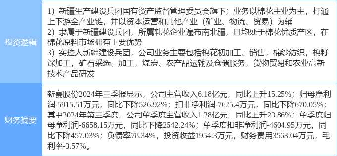 該股為國(guó)企改革,新疆概念,農(nóng)墾概念熱股,當(dāng)日國(guó)企改革概念上漲2.68%,新疆概念概念上漲2.6%,農(nóng)墾概念上漲2.51%。