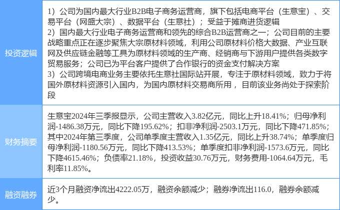 消息,生 意 寶4月14日漲停收盤,收盤價(jià)17.69元。該股于9點(diǎn)32分漲停,未打開(kāi)漲停,截止收盤封單資金為7937.35萬(wàn)元,占其流通市值1.78%。