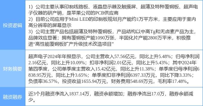 4月14日超聲電子漲停:銅箔/覆銅板,蘋果產(chǎn)業(yè)鏈,MiniLED概念熱股