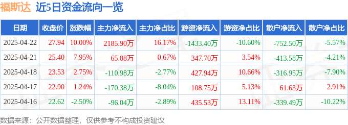 摘要: 消息,福斯達(dá)4月22日漲停收盤,收盤價(jià)27.94元。該股于9點(diǎn)25分漲停,1次打開漲停,截止收盤封單資金為5487.06萬元,占其流通市值3.96%。4月22日的資金流向數(shù)據(jù)方面,