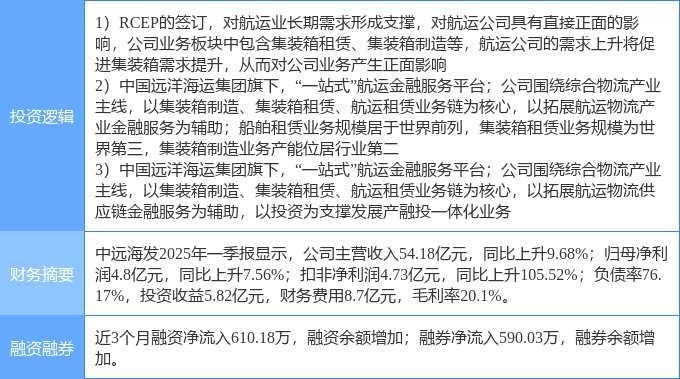該股為RCEP概念,航運(yùn),國企改革概念熱股,當(dāng)日RCEP概念概念上漲0.64%,航運(yùn)概念上漲0.2%。