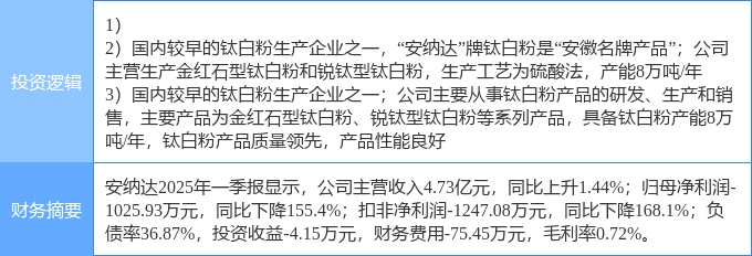 5月16日安 納 達(dá)漲停:新能源汽車,鈦白粉,有色金屬概念熱股