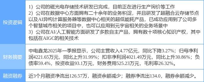 6月4日中電鑫龍漲停:磁電存儲(chǔ),AIGC概念,元宇宙概念熱股