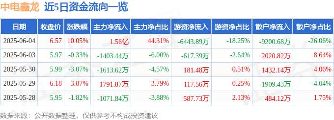 消息,中電鑫龍6月4日漲停收盤,收盤價(jià)6.57元。該股于9點(diǎn)36分漲停,未打開漲停,截止收盤封單資金為1.14億元,占其流通市值2.65%。