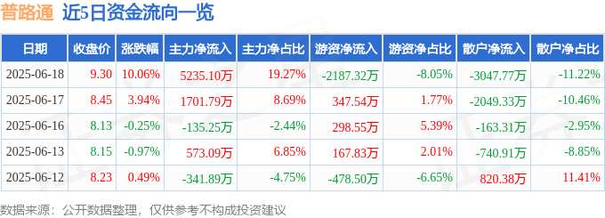 消息,普路通6月18日漲停收盤,收盤價(jià)9.3元。該股于13點(diǎn)8分漲停,未打開(kāi)漲停,截止收盤封單資金為4081.86萬(wàn)元,占其流通市值1.35%。